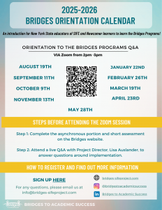 The Orientation to Bridges Programs series is designed to introduce teachers and administrators of SIFE and Newcomer learners in New York State to our programs, and to help guide questions around implementation. We will answer common questions, such as: